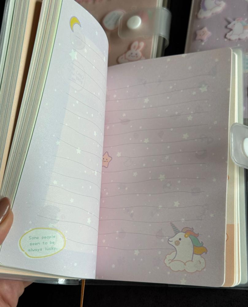 Agenda super fofa com capa maleável e à prova d’água, perfeita para proteger suas anotações no dia a dia. Possui fecho com botão, que ajuda a manter tudo bem organizado e seguro.
