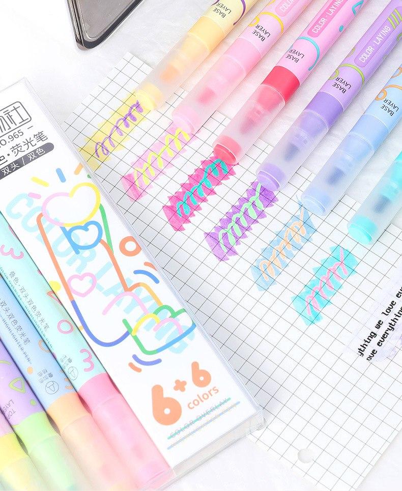 Kit Marca-Texto Color Laying – 6 Cores (Ponta Dupla)