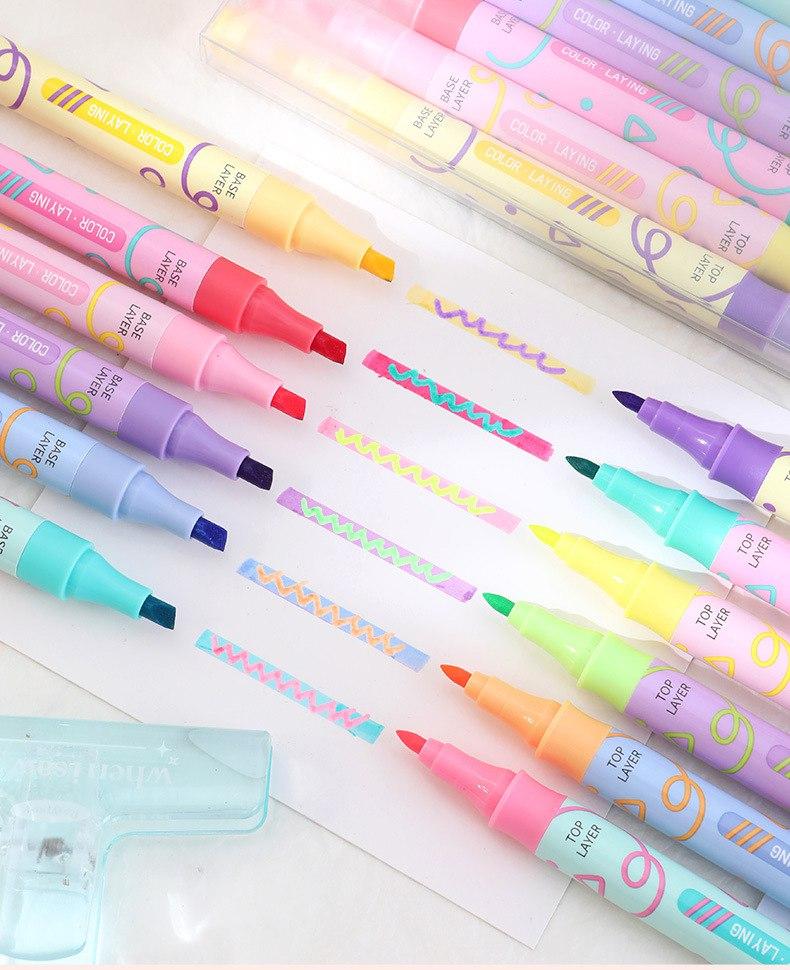 Kit com 6 marca-textos modelo Color Laying, ideal para quem ama organização com um toque criativo. Desenvolvido com sistema de sobreposição de cores, permite criar efeitos diferenciados ao passar uma cor sobre a outra.