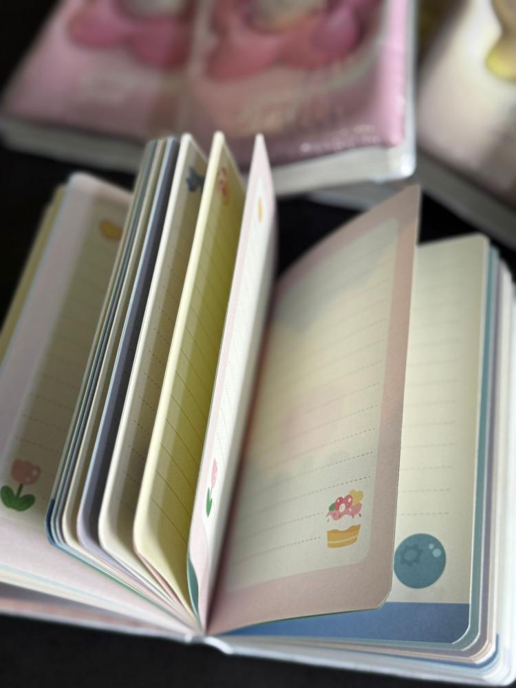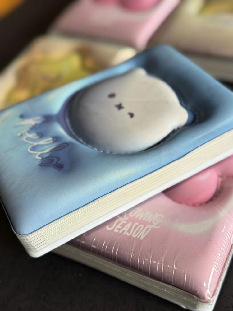 Agenda super fofa com capa puff em relevo, macia e cheia de charme, com personagens em estilo kawaii. Compacta e prática, é perfeita para levar na bolsa e usar no dia a dia.
