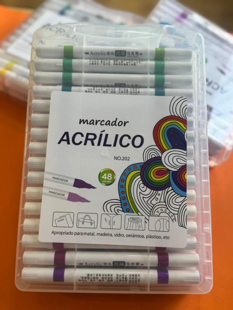 Transforme suas ideias em arte com o Kit 48 Canetas Acrílica Duas Pontas! Cada caneta possui duas pontas versáteis – uma fina para traços precisos e detalhes delicados, e outra pincel para preenchimentos suaves e efeitos artísticos incríveis.