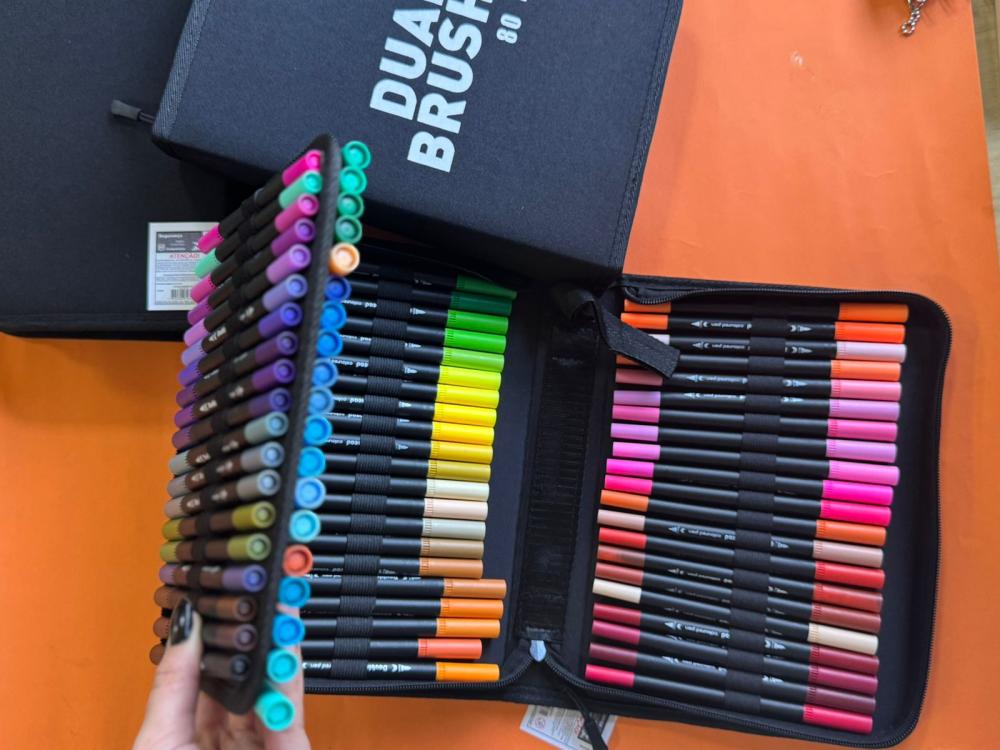 Dê vida às suas criações com o Estojo 80 Brush Pen Ponta Dupla, o kit definitivo para artistas, ilustradores, calígrafos e amantes da criatividade. Com 80 cores vibrantes, suaves e bem pigmentadas, você tem liberdade total para desenhar, colorir, fazer lettering, pintar mandalas, bullet journal e muito mais.