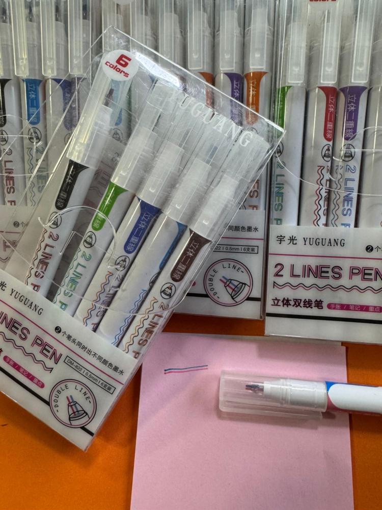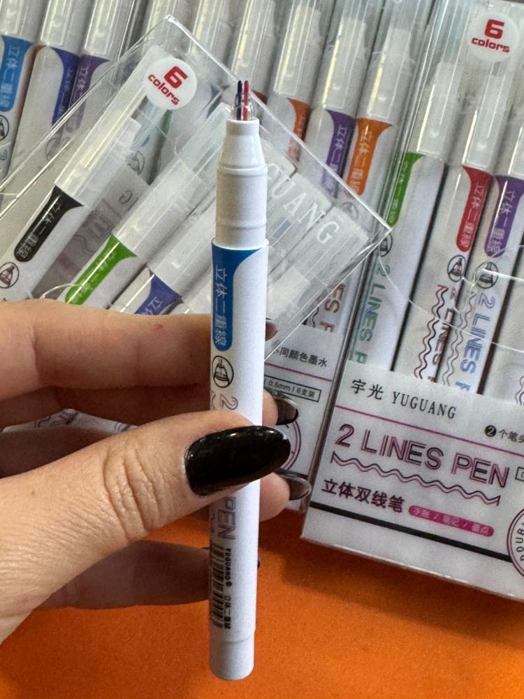 Destaque sua criatividade com o Kit de 6 Canetas Duas Linhas, a escolha perfeita para quem quer adicionar um toque único aos seus escritos e desenhos! Cada caneta possui uma tinta especial que cria automaticamente dois traços simultâneos: um contorno metálico com o centro colorido – ideal para títulos, cartões, convites, bullet journal, scrapbook e muito mais.