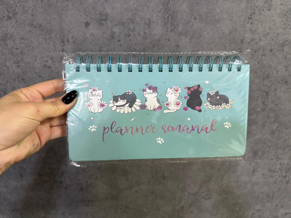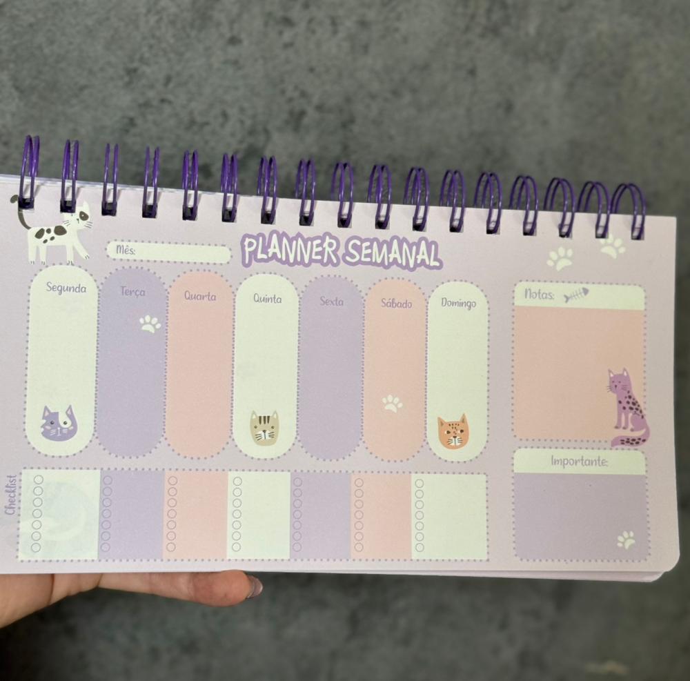 Organize sua semana com muita fofura! O planner semanal de gatinhos é ideal para anotar compromissos, tarefas e lembretes de forma prática e charmosa. Com estampas delicadas e cheias de personalidade, ele deixa a rotina mais leve e divertida 💕