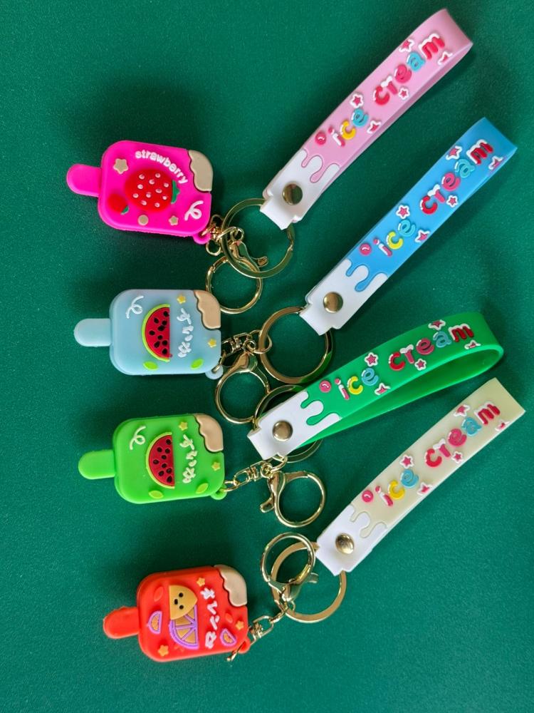 Chaveiros super fofos em formato de picolé, feitos em borracha colorida! Divertidos, leves e cheios de estilo, são perfeitos para dar um toque divertido às suas chaves, mochilas ou estojos. Ideal para quem ama acessórios criativos e diferentes.