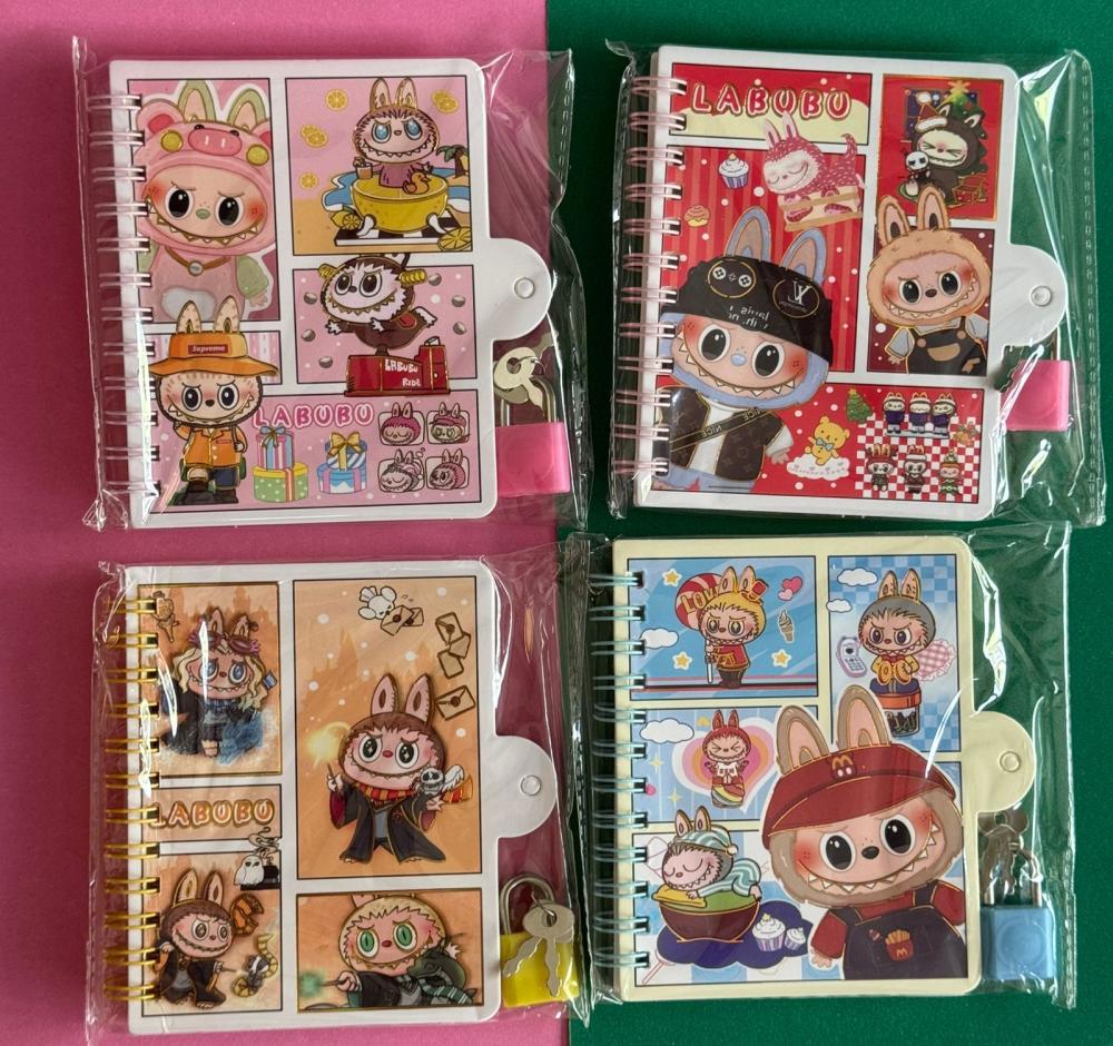 Cadernetas com cadeado do personagem Labubu – perfeitas para guardar segredos com muito estilo! Cada modelo vem com ilustrações vibrantes em estilo quadrinhos, mostrando o monstrinho em diferentes fantasias e situações divertidas. Com espiral, fecho com botão e um mini cadeado com chave, essas cadernetas são ideais para anotações pessoais, diários ou presentear fãs do universo The Monsters.