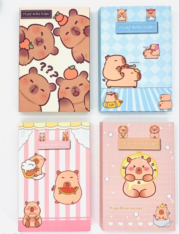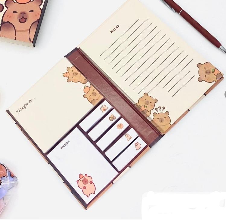 Bloco de anotações com post-its no tema capivara, super fofo e funcional! Contém diferentes tamanhos de blocos autoadesivos para recados, listas e marcações, além de um espaço maior para anotações. Ideal para manter a organização com muito estilo e um toque divertido desses adoráveis bichinhos! 🐾🧸✨