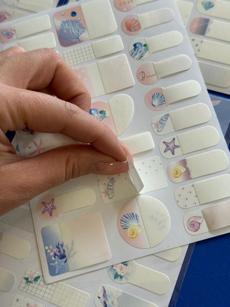 Conjunto com 4 cartelas de marcadores adesivos em tons pastel, com ilustrações delicadas de conchas, golfinhos, corais e estrelas-do-mar. Ideal para destacar páginas, decorar planners ou organizar estudos com um toque marinho e encantador. 🐚✨