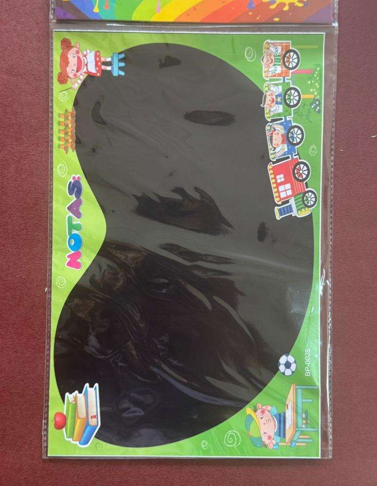 Ideal para anotações, recadinhos ou atividades educativas! Com moldura colorida e divertida, esse adesivo tipo lousa pode ser usado com giz comum e é perfeito para decorar quartos, salas de aula ou cantinhos de estudo. 🧒📚🎨