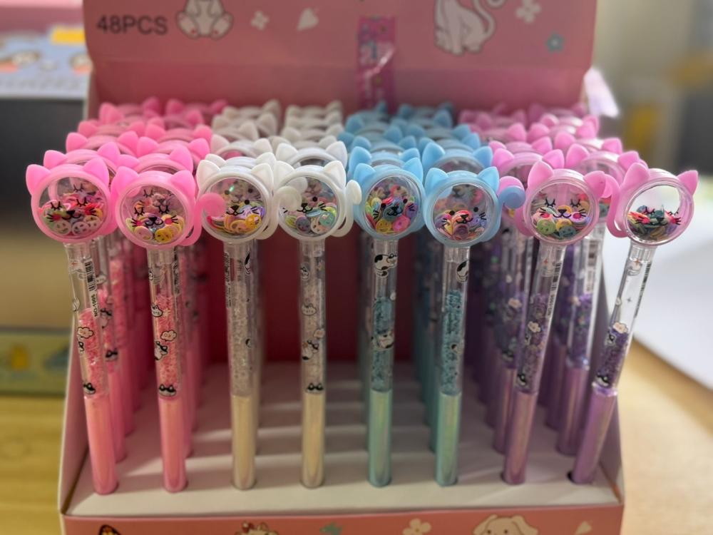 Charmosas e super divertidas, essas canetas com topo em formato de gatinho e detalhes internos com glitter e enfeites coloridos vão deixar sua escrita muito mais especial! Perfeitas para o dia a dia, estudos ou para presentear, elas combinam fofura e criatividade em cada detalhe. Disponíveis em várias cores delicadas e vibrantes! 🖊️💖
