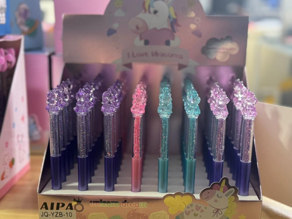 Mágicas e encantadoras, essas canetas com topo em formato de unicórnio e corpo cheio de glitter vão deixar sua escrita super especial! Perfeitas para quem ama itens fofos e criativos, são ideais para escola, trabalho ou para presentear alguém que adora um toque de fantasia no dia a dia. 🌈💖