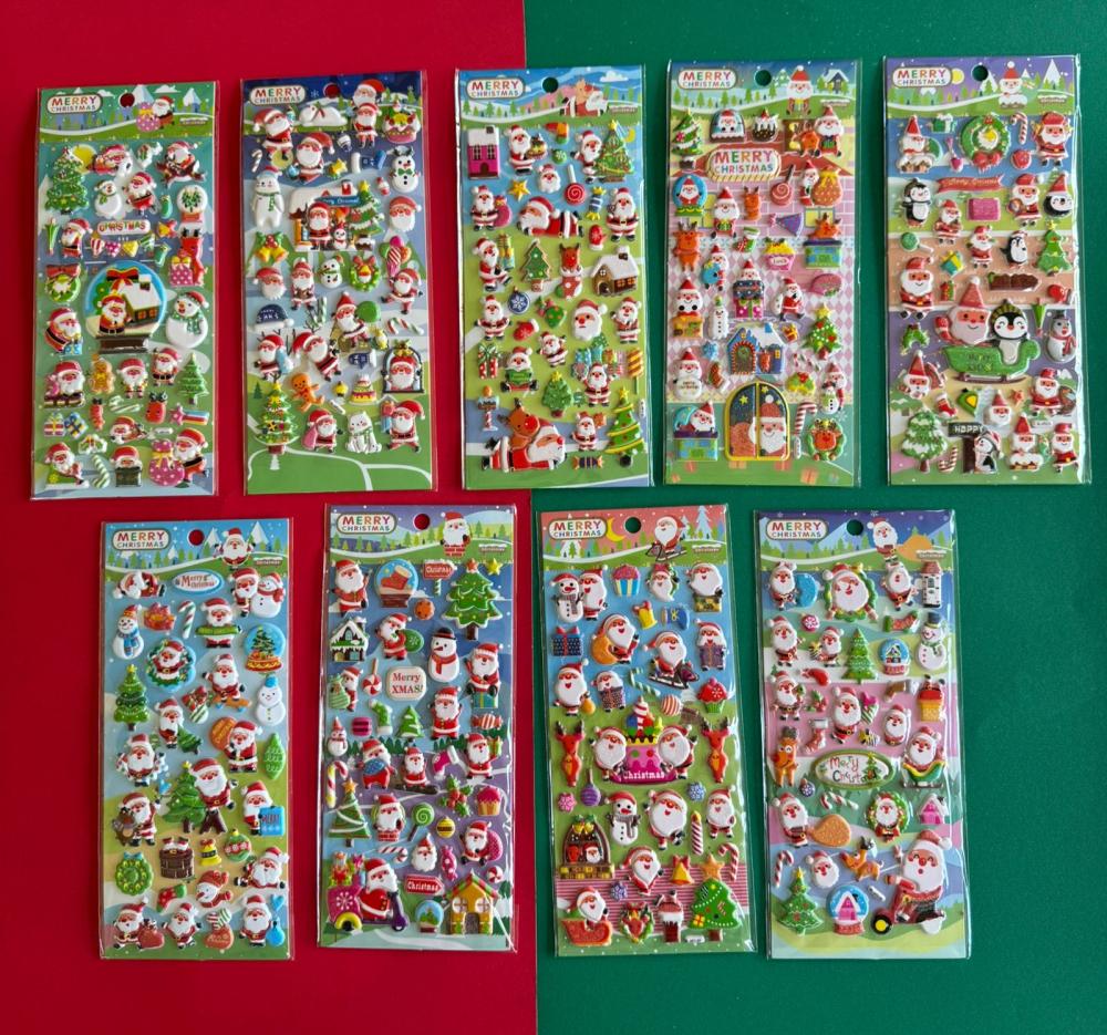 Cartela de adesivos natalinos medindo 9,5×22 cm, com diversos personagens festivos como Papai Noel, árvores de Natal, bonecos de neve, presentes e elementos típicos da temporada. Coloridos, brilhantes e cheios de detalhes, são perfeitos para decorar planners, cartões, embalagens, cadernos e projetos artesanais. Ideal para adicionar um toque divertido e encantador ao Natal!