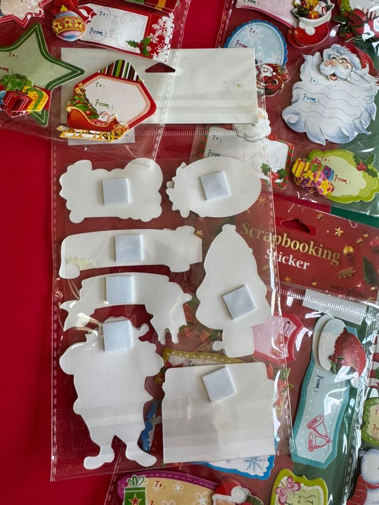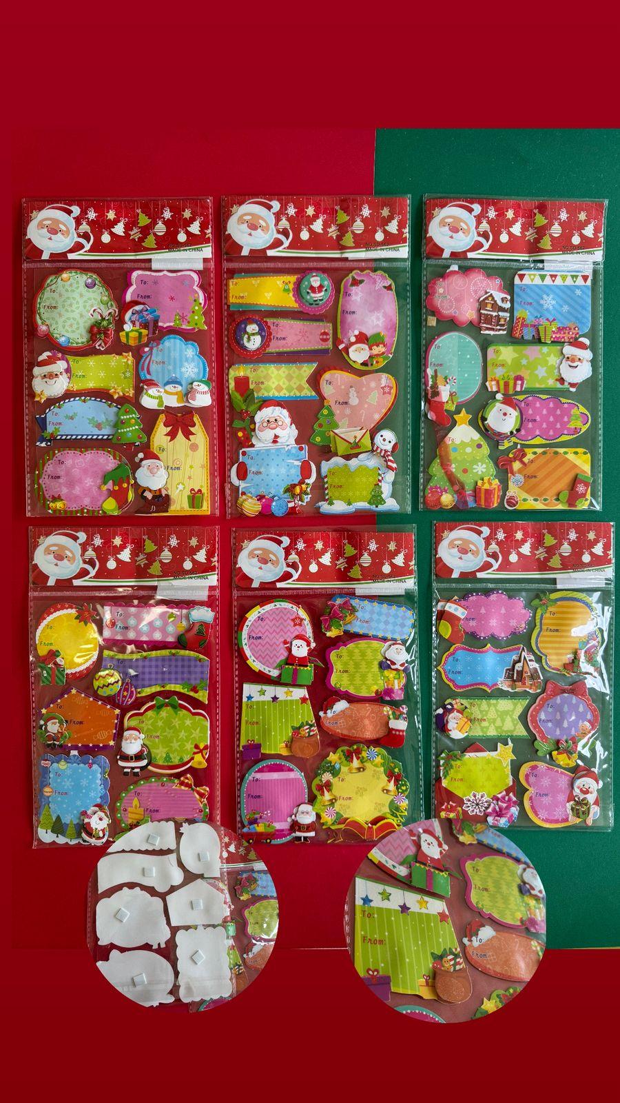Cartela de adesivos 3D para scrapbooking medindo 15×25 cm, com etiquetas natalinas decoradas em relevo para escrever “De/Para”. Possui personagens e elementos festivos como Papai Noel, árvore de Natal, presentes, boneco de neve e muito mais. Ideal para personalizar presentes, cartões, embalagens e projetos artesanais, deixando tudo com um toque especial e encantador!