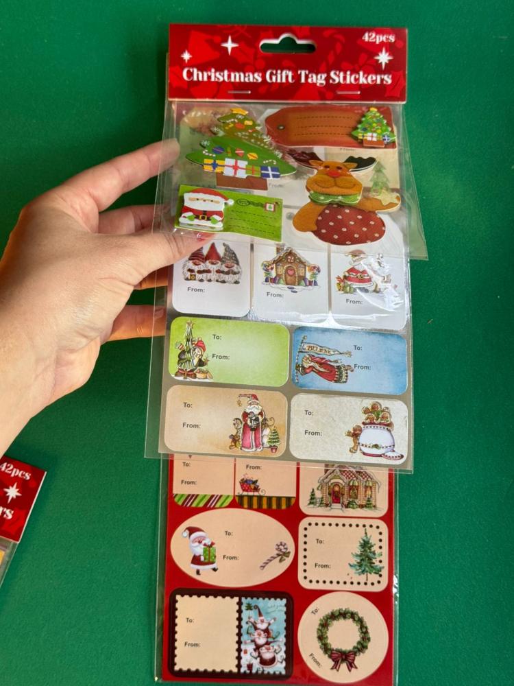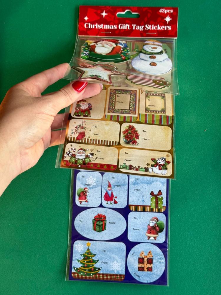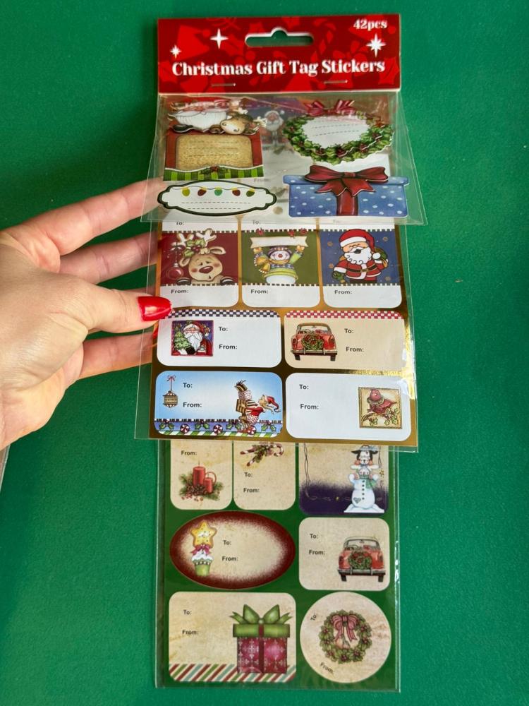 Cartela de etiquetas adesivas natalinas medindo 12,5×35 cm, contendo 42 unidades com espaços “To/From” para identificação. Possui diversos designs temáticos como Papai Noel, árvores de Natal, presentes, bonecos de neve e outros elementos festivos. Ideal para personalizar presentes, embalagens, cartões e projetos artesanais, deixando tudo mais organizado e com um toque especial de Natal!