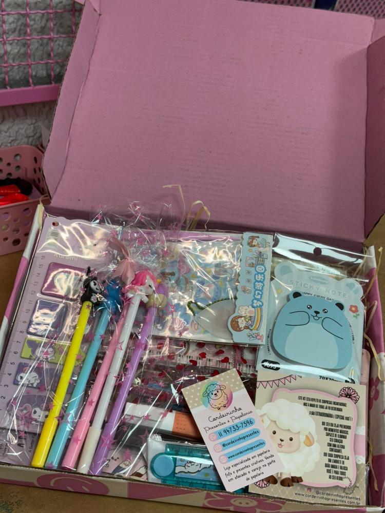 Prepare-se para uma explosão de fofura! O Kit Mega Fofura reúne 20 itens sortidos de papelaria, escolhidos com todo carinho para deixar seus estudos e seu dia a dia muito mais encantadores.