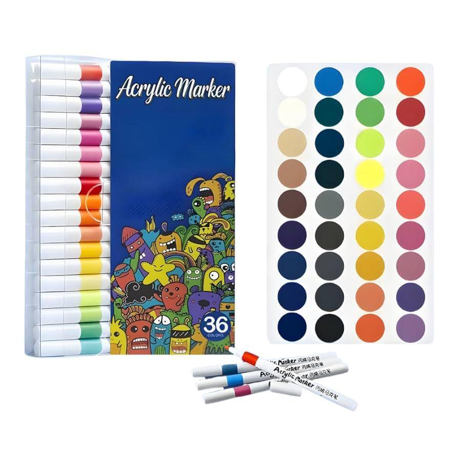 Perfeito para quem ama criar com muitas cores! Este kit vem com 36 canetinhas acrílicas super pigmentadas, com ótima cobertura e acabamento incrível em papel, plástico, vidro, madeira e mais ✨🖍️