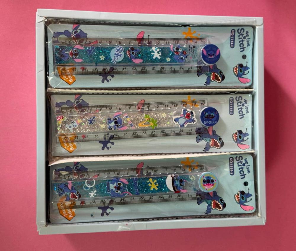 Perfeita para quem ama praticidade e fofura! A régua retrátil de 30cm com tema do Stitch é compacta, fácil de usar e cabe em qualquer estojo.