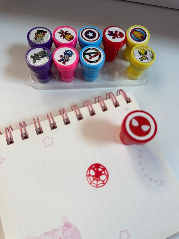 iversão garantida para os fãs de ação! O kit com 10 carimbos de Super-Heróis traz desenhos incríveis para decorar cadernos, tarefas, atividades e o que mais imaginar.