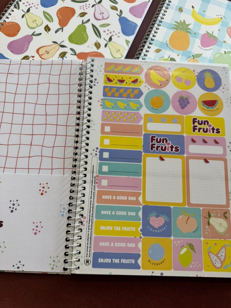 O Caderno Fun Fruits 1 Matéria – 80 folhas é a dose perfeita de frescor e fofura para acompanhar seus estudos! 🍓📚 Com capa divertida e cheia de frutinhas encantadoras, ele deixa qualquer anotação mais leve e colorida. No tamanho 183mm x 249mm, cabe direitinho na mochila e oferece muito espaço para ideias, projetos e tarefas do dia a dia. Um caderno que combina praticidade com muita alegria em cada página! 🍉✨