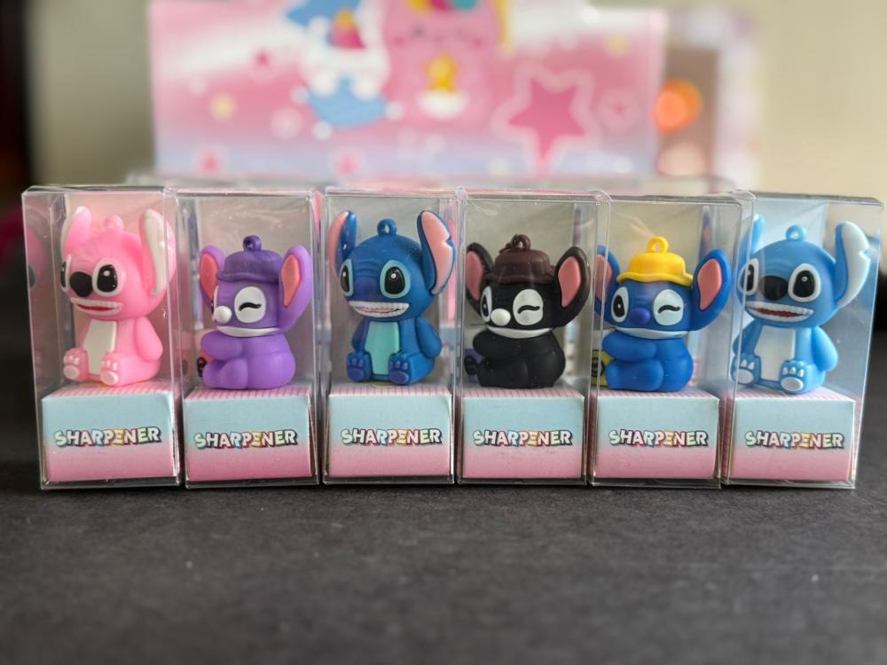 Apontador inspirado no personagem Stitch, perfeito para quem ama papelaria divertida e cheia de personalidade. Disponível em várias cores vibrantes, traz um design encantador que deixa o material escolar ainda mais especial. Possui lâmina eficiente para um apontar rápido e preciso, ideal para uso diário na escola, em casa ou no escritório. Compacto, leve e fácil de transportar, é uma ótima opção para crianças, estudantes e fãs do Stitch.