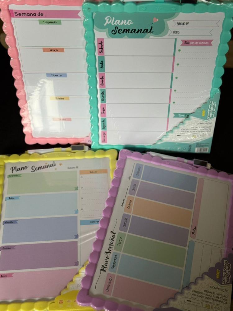 Um organizador versátil que une a praticidade de um planner semanal/mensal com a flexibilidade de uma lousa branca apagável. Ideal para quem quer planejar tarefas, anotar metas, criar listas de compras, controlar hábitos sem desperdiçar papel.