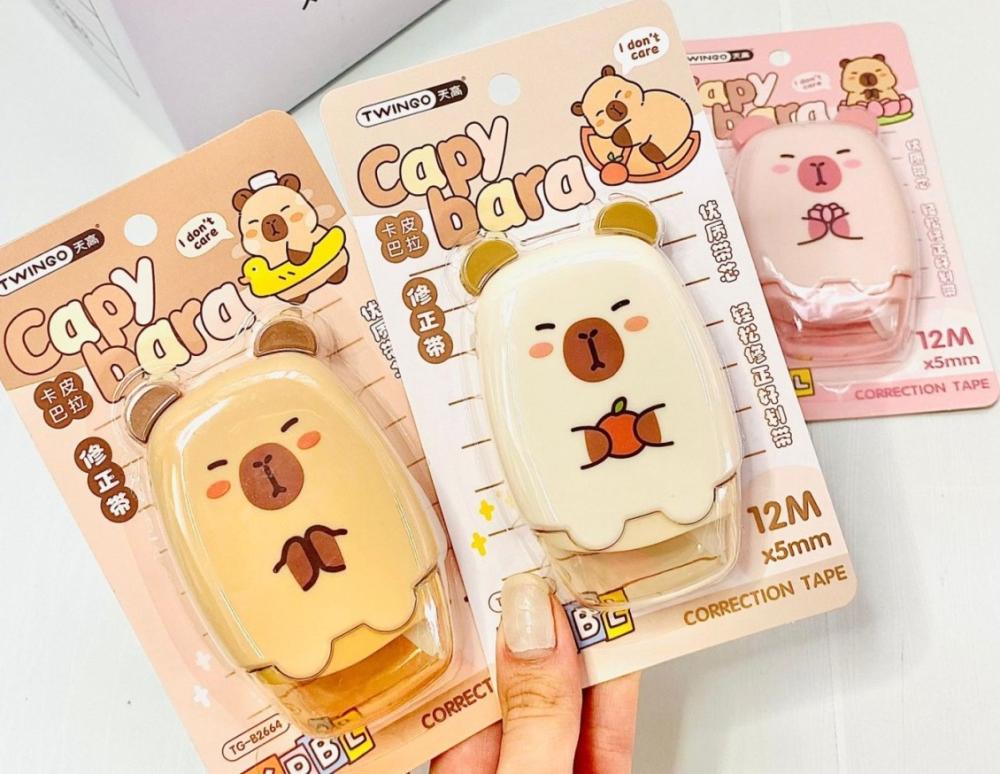 Fita corretiva com estampa super fofa de capivara, perfeita pra deixar os estudos e a rotina mais divertidos ✨