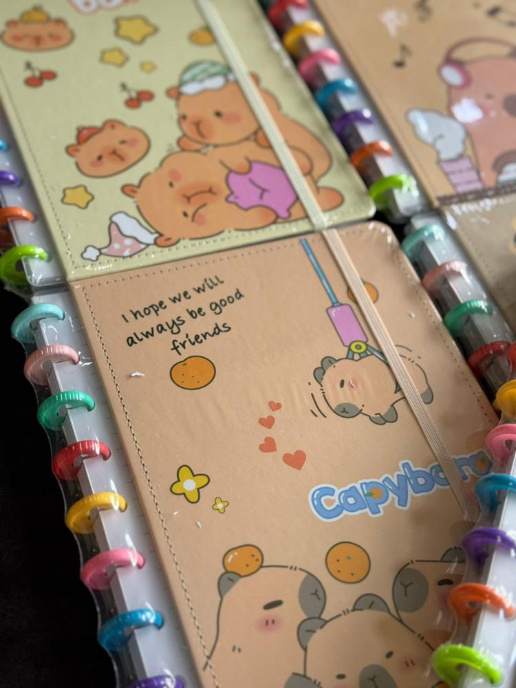O Caderno Inteligente B5 com estampa de capivara é perfeito para quem ama papelaria fofa e organização. Com sistema inteligente, ele permite remover, adicionar e reorganizar as folhas sempre que quiser, deixando tudo do seu jeitinho.