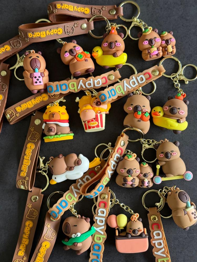 Esses chaveiros de capivara são puro encanto! Com diversos modelinhos super fofos e cheios de detalhes, eles são perfeitos para dar um toque divertido em chaves, mochilas, estojos ou bolsas. Produzidos em material emborrachado, são resistentes e ideais para o uso diário.