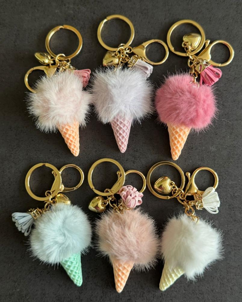 Encantadores e super fofos! Esses chaveiros em formato de sorvete combinam pom pom macio com casquinha detalhada, criando um visual divertido e delicado. Com aproximadamente 5,5 cm, são ideais para decorar chaves, bolsas, mochilas e estojos, trazendo um toque doce e criativo ao dia a dia. Disponíveis em cores suaves e harmoniosas, perfeitos para presentear ou colecionar.