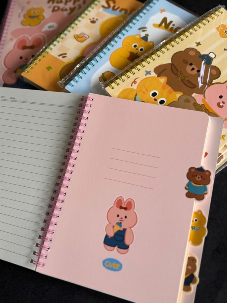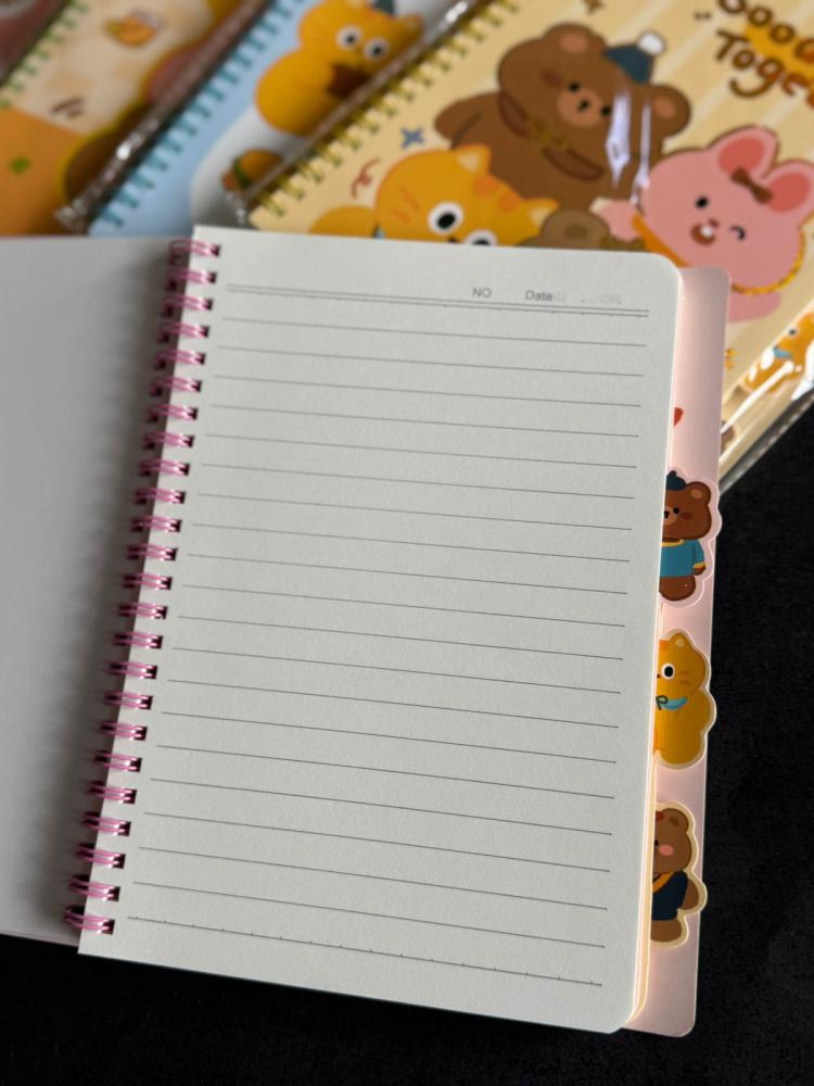 Caderno super fofo e funcional, ideal para estudos, anotações do dia a dia, trabalho ou organização pessoal. Possui capa dura resistente, com estampas divertidas e delicadas, além de divisórias internas decoradas que facilitam a separação dos conteúdos.