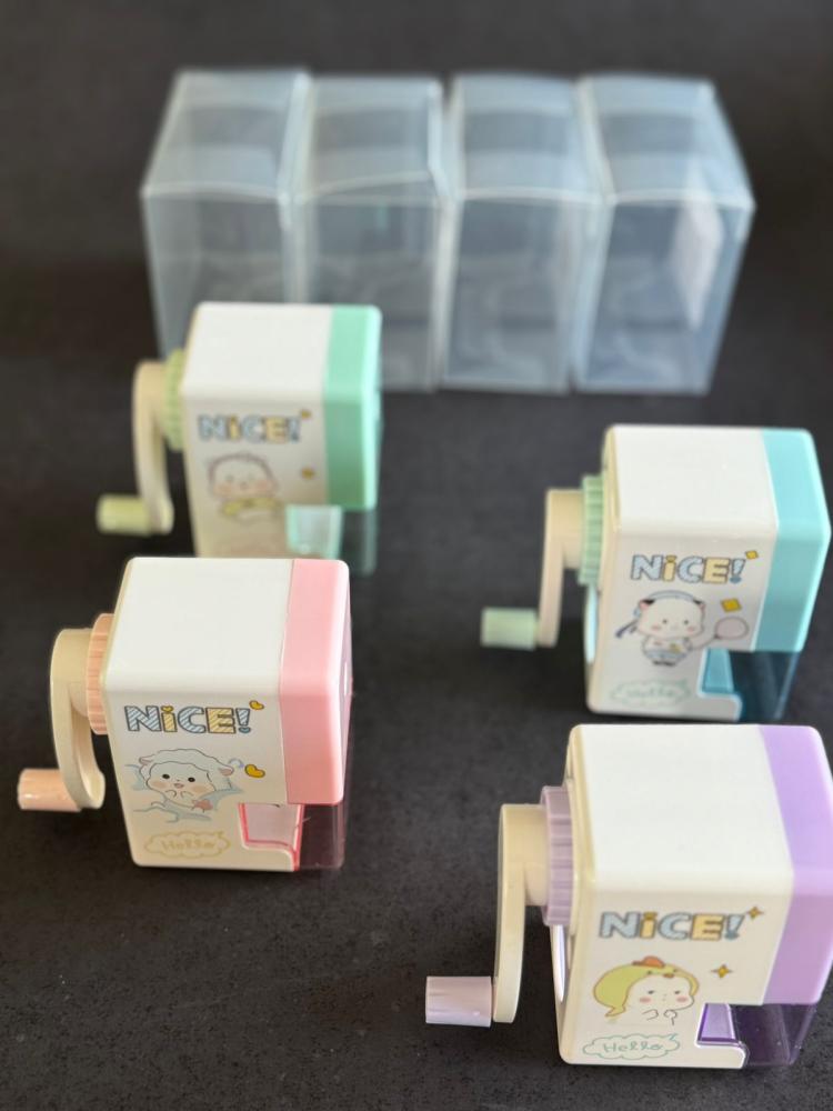 Apontador de mesa compacto, funcional e com estampa infantil delicada. Ideal para uso escolar, ele combina praticidade com um design moderno e colorido, deixando o material ainda mais atrativo.