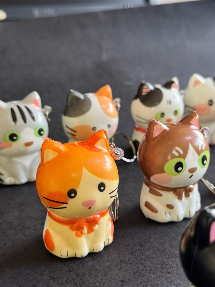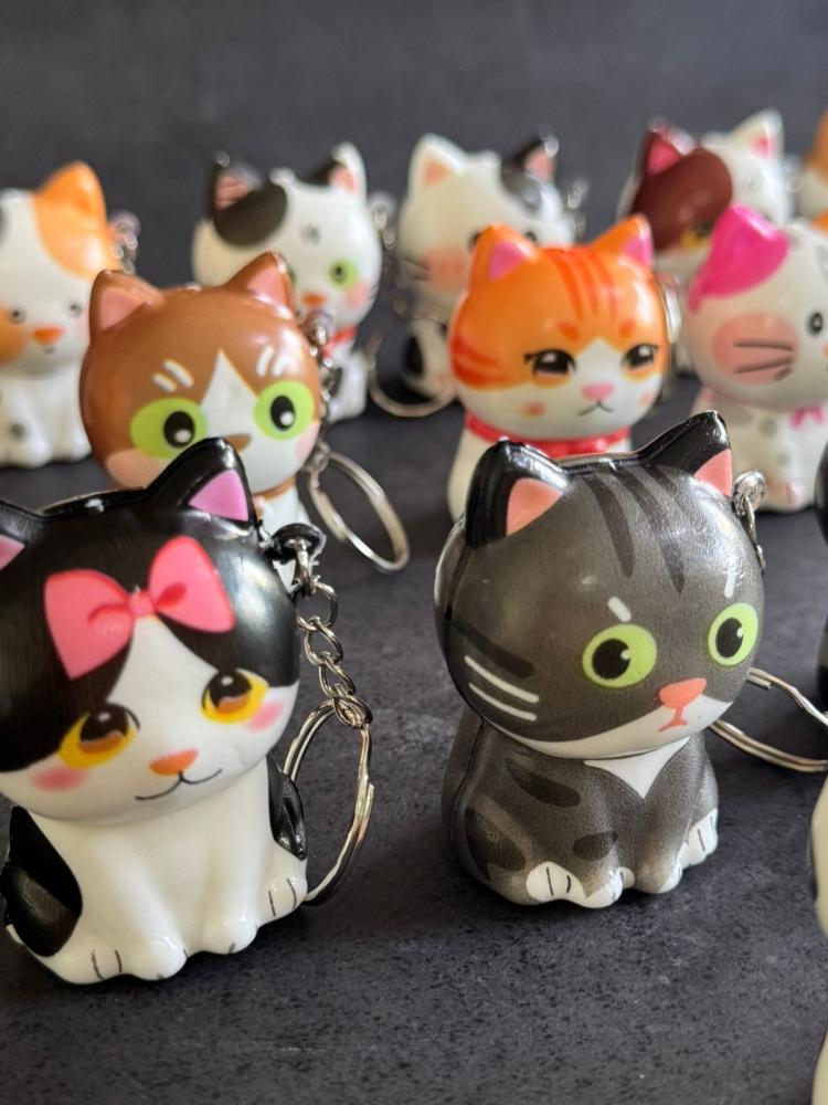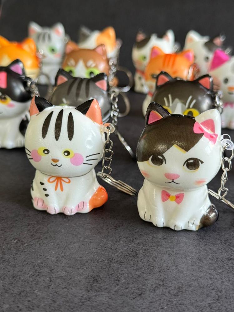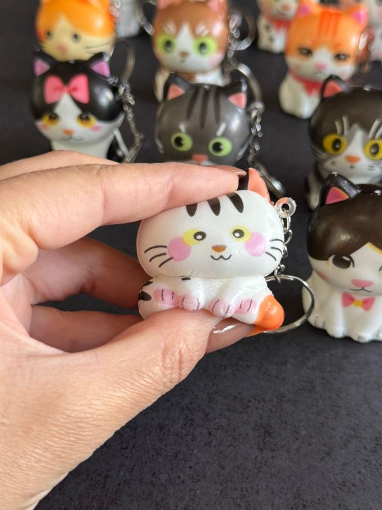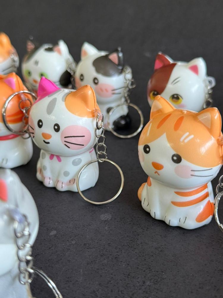 Chaveiro em formato de gatinhos super fofos, perfeito para decorar chaves, mochilas, estojos ou bolsas. Feito em material squishy macio, que pode ser apertado e volta ao formato original, proporcionando uma sensação divertida e relaxante.