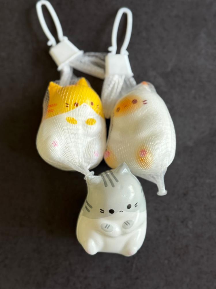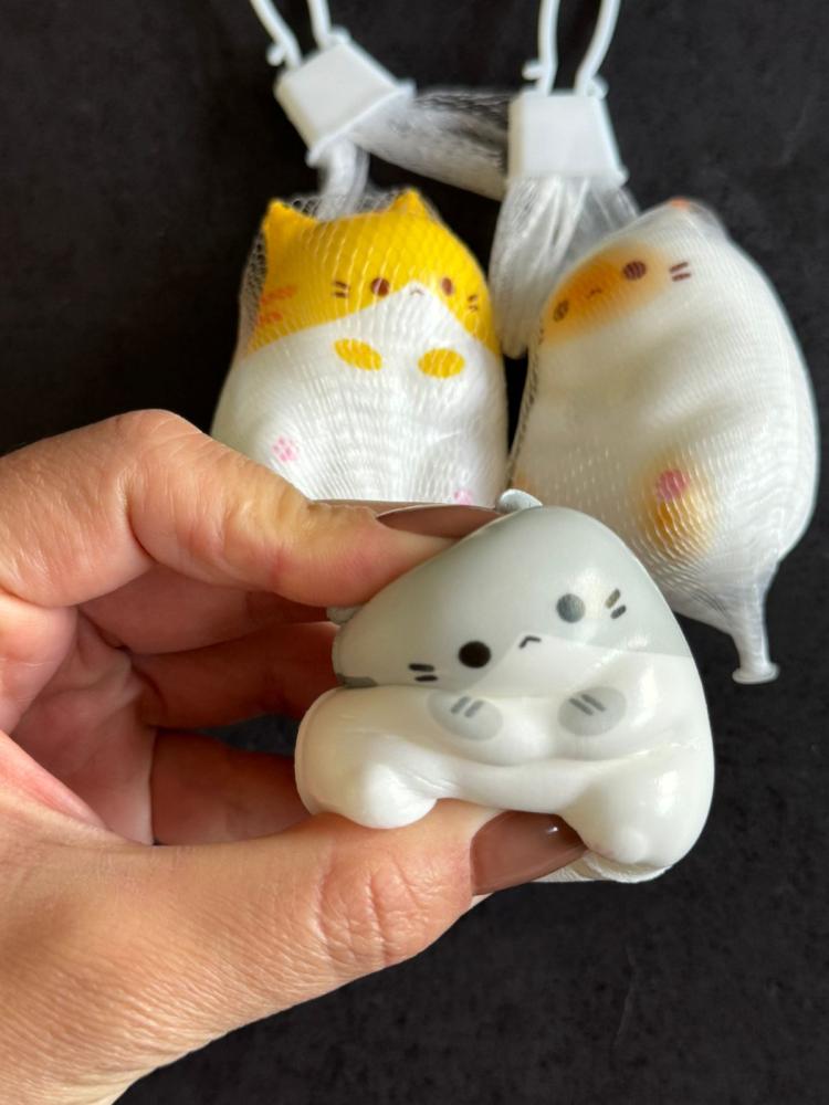 Squishy de gatinho super fofo, embalado em uma redinha divertida que cria um efeito diferente quando apertado. Macio e relaxante, é perfeito para aliviar o estresse e se divertir.