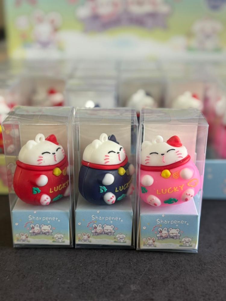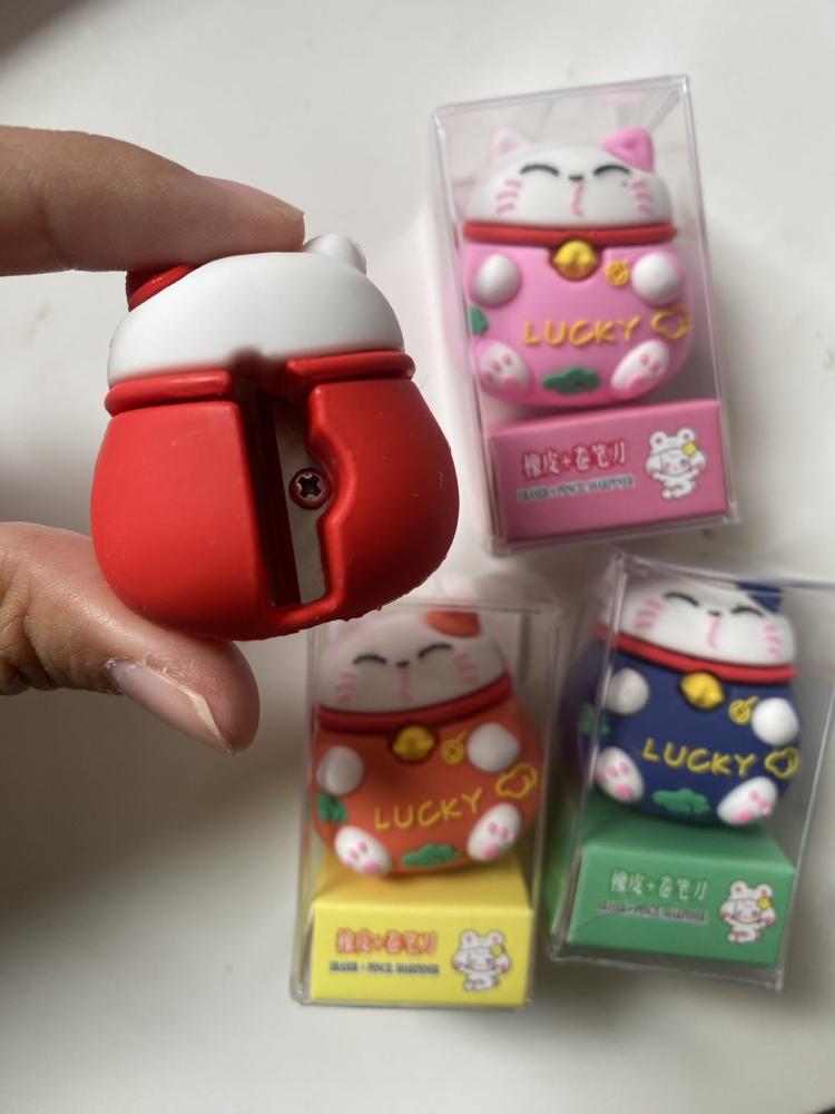 Apontador super fofo em formato de gatinho da sorte, inspirado no estilo oriental. Um item delicado e divertido que deixa qualquer material escolar ainda mais encantador.