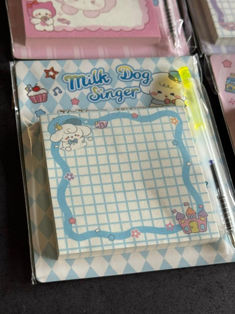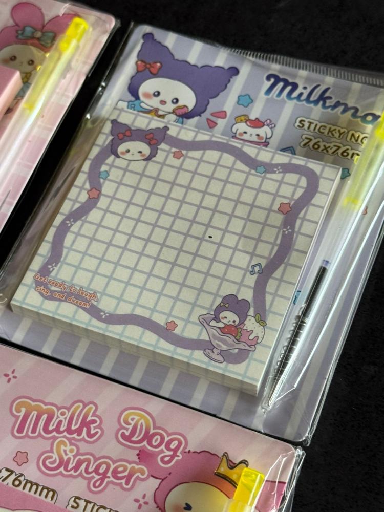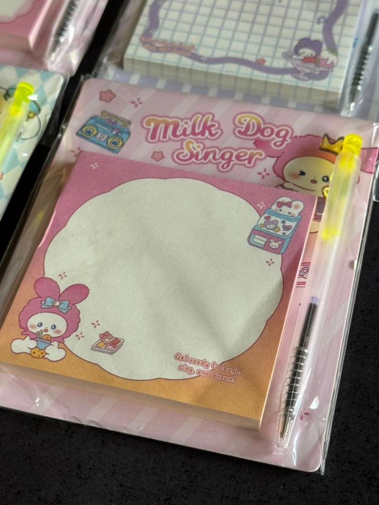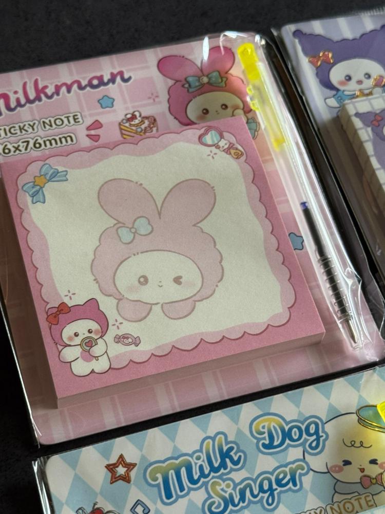 Bloquinho de post-it super fofo acompanhado de mini caneta, perfeito para anotações rápidas, lembretes e recadinhos do dia a dia. Com estampas inspiradas na turma da Hello Kitty, deixa sua papelaria ainda mais charmosa e divertida.