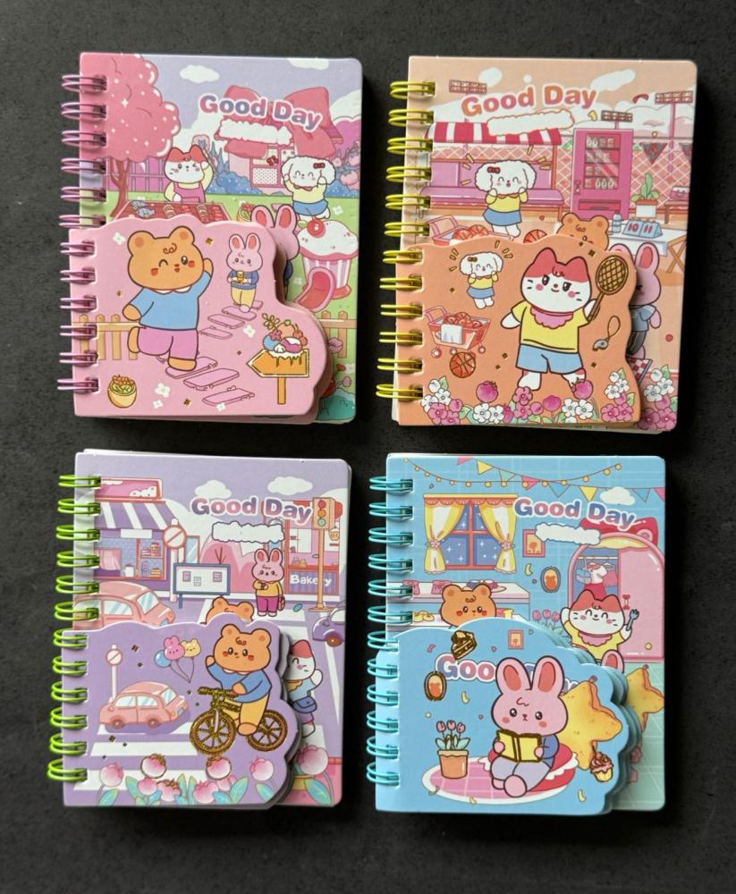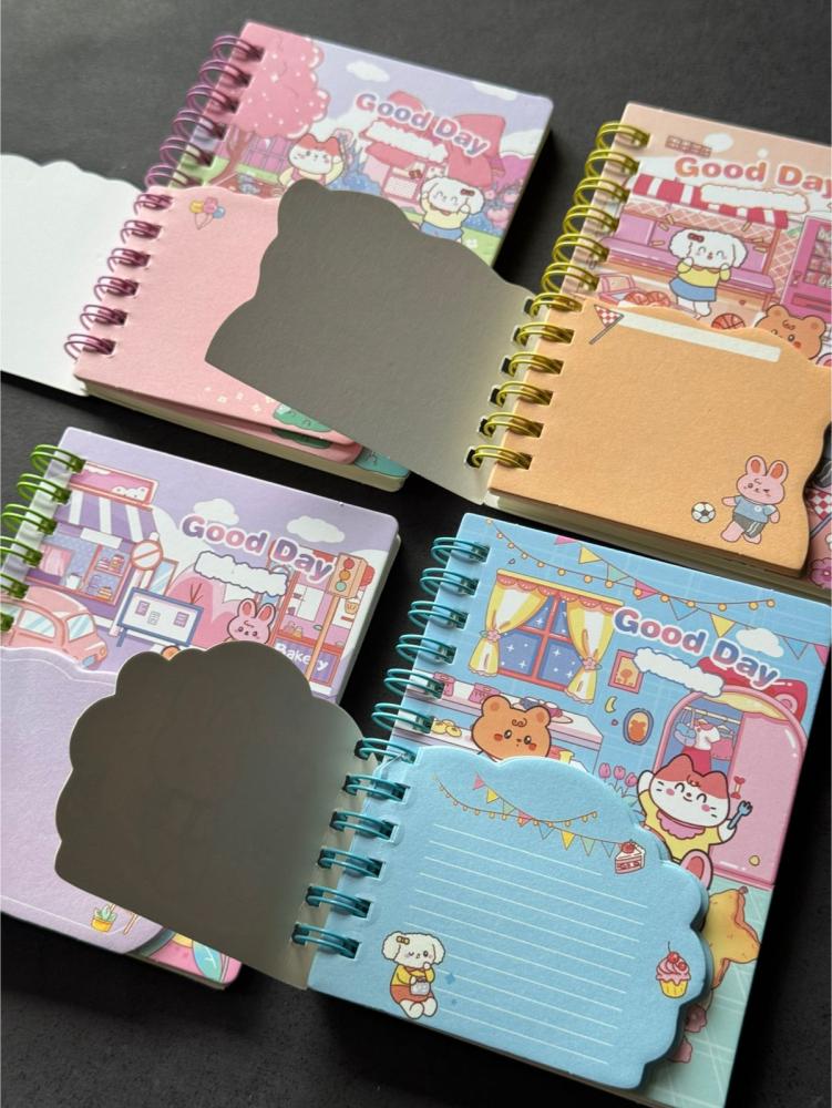 Perfeita para quem ama praticidade com um toque fofo, a Mini Caderneta “Good Day” é ideal para levar na bolsa e registrar ideias, lembretes e anotações do dia a dia.
